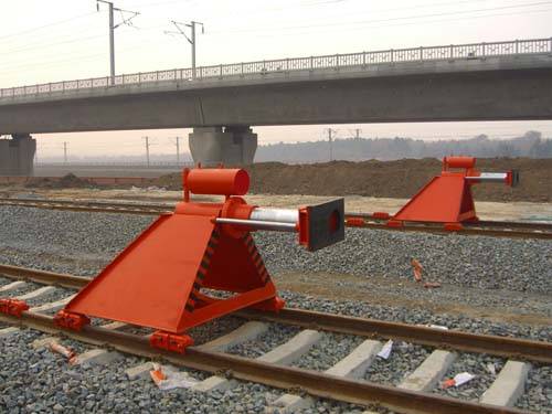 7、主體架受力后依次推動(dòng)擋車器前面的兩對(duì)制動(dòng)軌、后面兩對(duì)制動(dòng)軌和兩對(duì)增力器滑行,摩擦阻力逐步增加,即可防止撞壞車輛和主體架,又能使擋車器累計(jì)阻力增大。擁有較大的制動(dòng)能力。